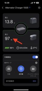 ネットでいろいろと調べてみると、搭載しているエコフローのオルタネーターチャージャーには、逆充電モードという機能があることがわかった。